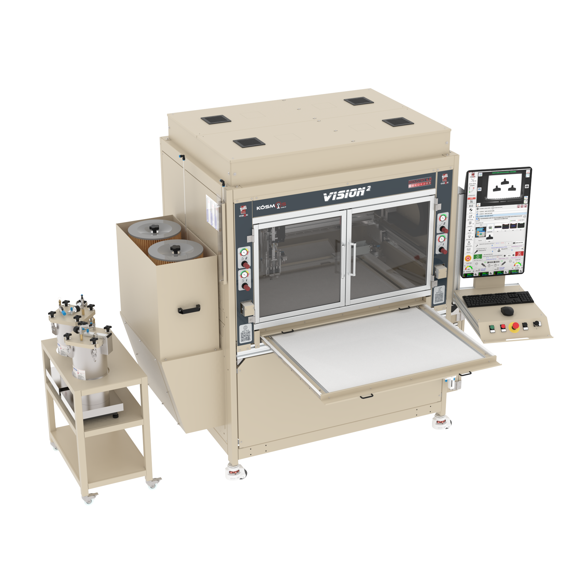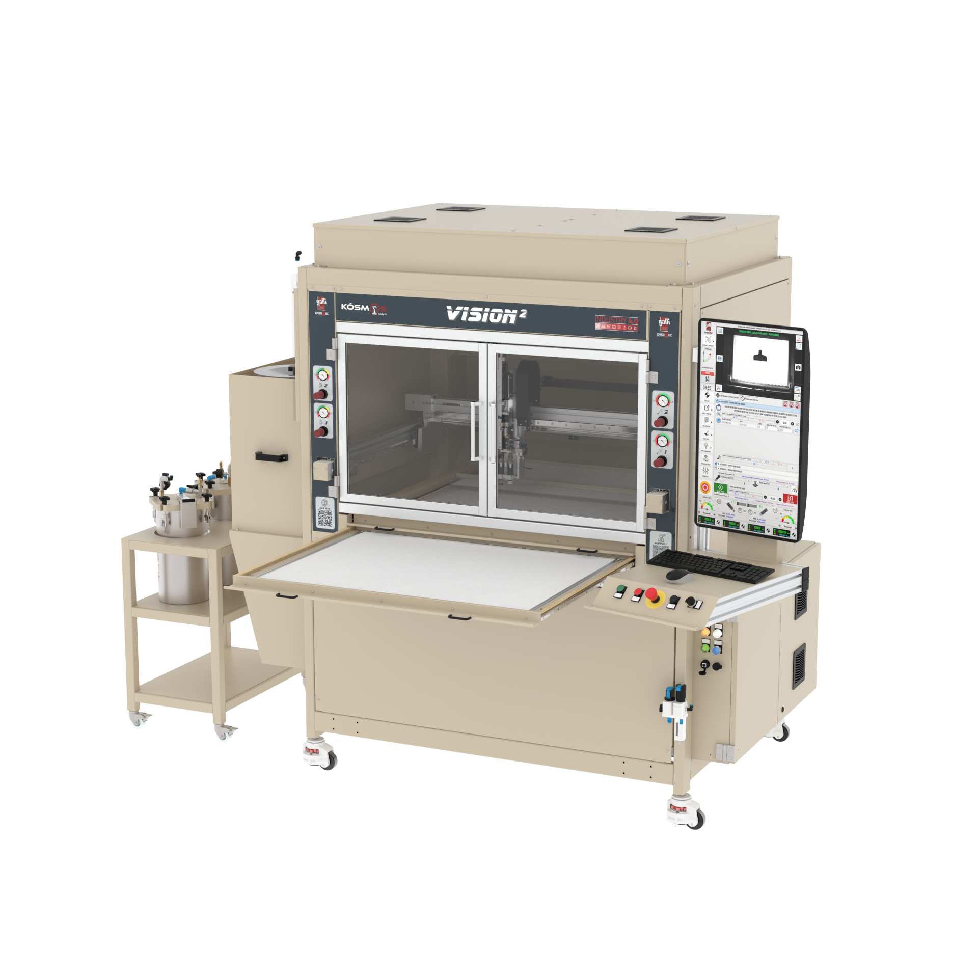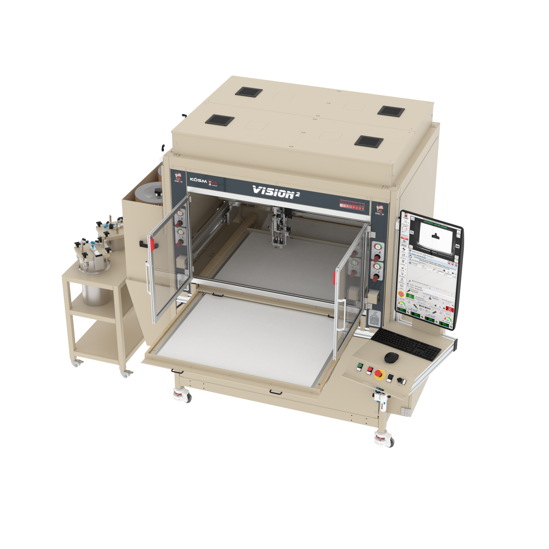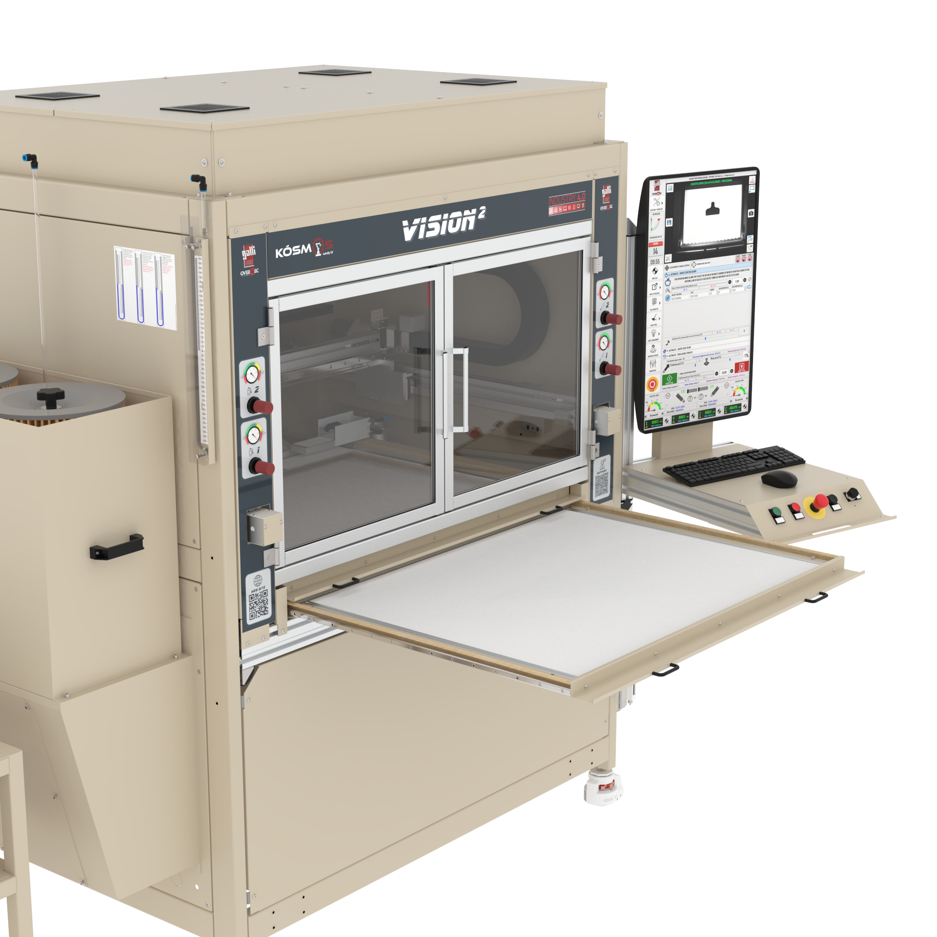 - The machine is connected to a industrial Computer on which is installed Kosmos software to control the working cycle